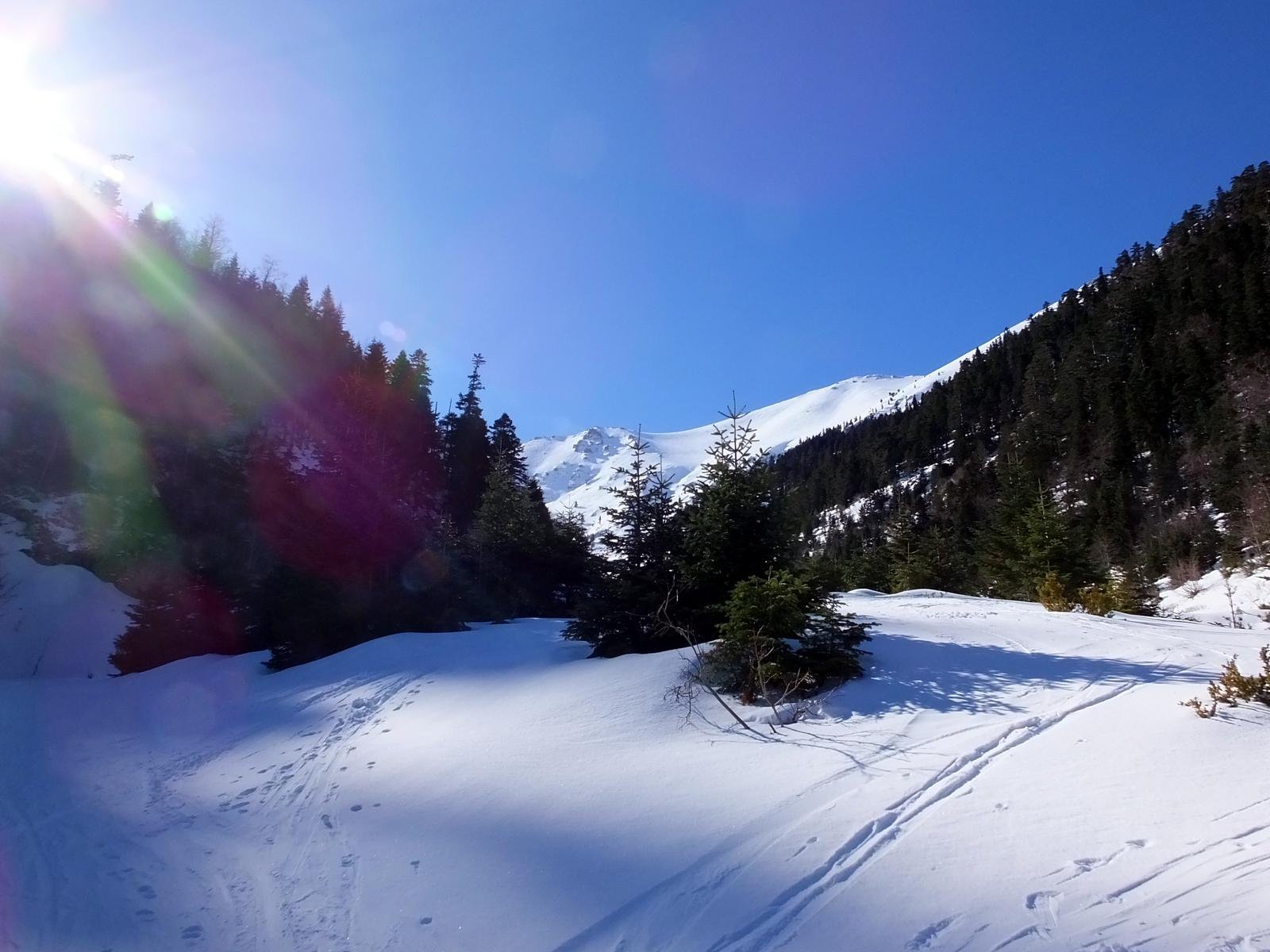 Μια από τις κλασσικές διαδρομές ορειβατικού ski στην Ελλάδα. Η Κατεύθυνση της κοιλάδας του ρέματος είναι Βόρεια, και η ποιότητα του χιονιού συνήθως καλή. Η χιονοκάλυψη – λόγω της βόρειας κατεύθυνσης, διατηρείται συχνά μέχρι αργά την Άνοιξη. Η κοιλάδα αρχικά είναι πλατιά και με ήπια κλίση, ενώ σε υψόμετρο 1830μ στενεύει προσωρινά και αποσπασματικά ( μέχρι υψομέτρου 2200μ ), ενώ συγχρόνως η κλίση αυξάνεται. Από υψομέτρου 2300μ, η διαδρομή εισέρχεται στην ευρεία και εντυπωσιακή Μεγάλη Γούρνα ( περίκλειστο αλπικό οροπέδιο που σχηματίζεται μεταξύ των κορυφών Σκολιό, Αγιος Αντώνιος, Τρύπες, Χριστάκη ). Από την μεγάλη Γούρνα η πρόσβαση στις παραπάνω κορυφές είναι εφικτή, ενώ η δυσκολία κυμαίνεται. Ευκολότερη επιλογή αποτελεί σίγουρα η ανάβαση στην κορυφή Χριστάκη 2707μ. Η ΝότιοΔυτική πλαγιά είναι ευρεία και προσφέρει άπλετες γραμμές κατάβασης. Ο προσανατολισμός της όμως αυτός, ορισμένες φορές επηρεάζει αναλόγως την ποιότητα του χιονιού. Από την κορυφή – εφ’ όσον η χιονοκάλυψη το επιτρέπει, προσφέρεται απρόσκοπτη κατάβαση 1300 μέτρων.